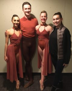Conrad and Kaia back stage before performing their Contemporary pieces