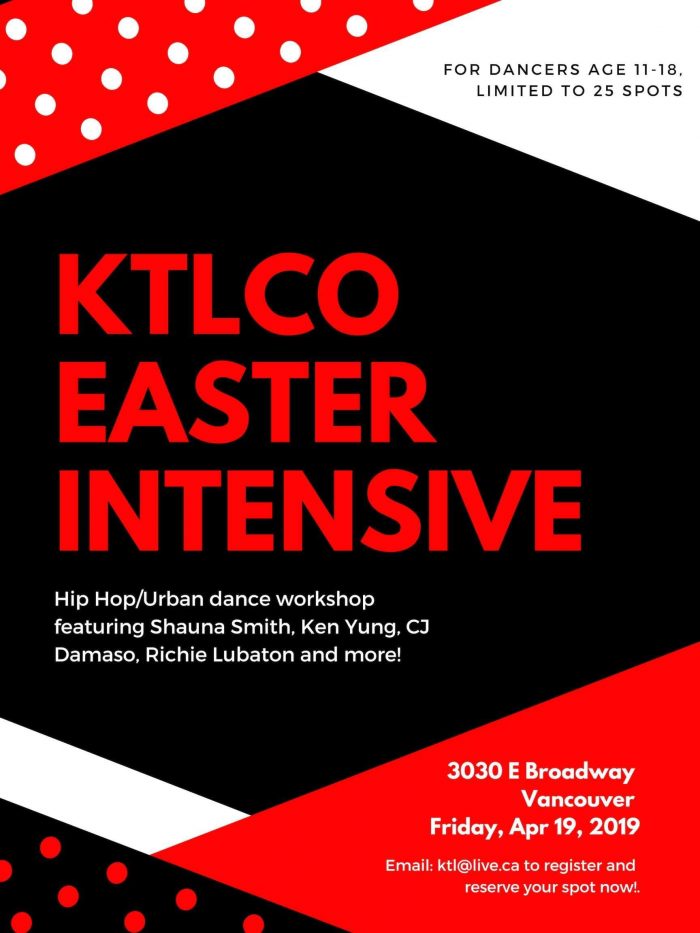 KTL Co. is hosting an Hip Hop Intensive, on Easter Friday, April 19, 10:30 am – 4:30 pm