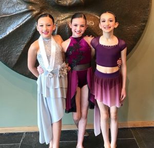 Olivia, Julia and Victoria after their lyrical solos at Surrey Festival of Dance