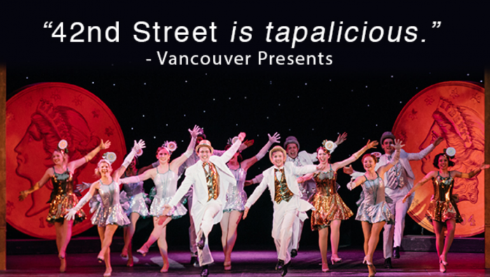 “Tiana is delightful in this show! Elegant and adorable at the same time,” raves Cori Caulfield. “With numbers like ‘Lullaby of Broadway,’ ‘Go into Your Dance,’ ‘We’re in the Money,’ and of course ‘Forty-Second Street,’ this is a quintessential hit musical. I love the way it captures the grit and glamour of tap-crazy Broadway in the Depression era.”